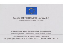 Business card of Fausta Deshormes as Head of Women's Information Unit