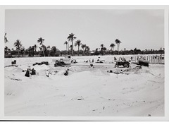 The image depicts excavations during the SIES project for the construction of a fertilizer factory in M'Bao, Senegal. The back reads: "Fouilles fondations sphères".