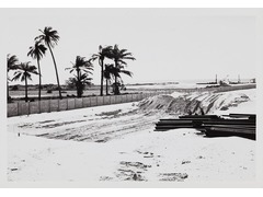 The image depicts excavation works of the SIES project for the construction of a fertilizer factory in M'Bao, Senegal. The back reads "Fouilles station déchargement soufre".