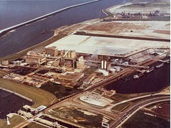 Aerial view during the project for the construction of facilities for the production of chlorine, chlorinated hydrocarbons and methylamine in Delfzijl, province of Groningen, in the Netherlands.