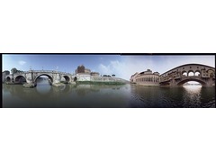 Panoramic view obtained through a digital stitching process between the original 360 degrees pictures of Ponte Vecchio in Florenta, Intaly and Ponte San'Angelo in Rome, Italy.