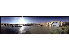 Panoramic view obtained through a digital stitching process between the original 360 degrees pictures of Puente Romano in Salamanca, Spain and Puente de San Martin in Toledo, Spain.