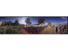 Panoramic view obtained through a digital stitching process between the original 360 degrees pictures of Puente de San Martin in Toledo, Spain and Puente Nuovo in Ronda, Spain.