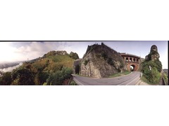 Panoramic view obtained through a digital stitching process between the original 360 degrees pictures of Pont de Jambes in Namen, Belgium and Schlossbrucke in Luxembourg.