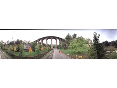 Panoramic view obtained through a digital stitching process between the original 360 degrees pictures of Viaduc de l'Alzette and Pont Europeen Grande-Duchesse Charlotte in Luxembourg.