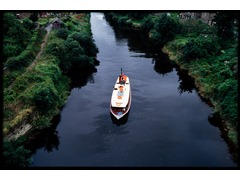 General shot with Paul Gofferjé and Trudy Nijman setting up the photographic equipment on the top of the boat used to sail on Severn river near Iron Bridge in Coalbrookdale-Telford, United Kingdom.