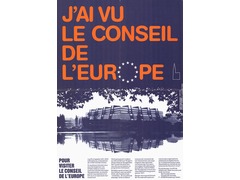 Poster promoting guided visits to the Council of Europe in Strasbourg. Message: "possibility of arranging tours or educational programs (from simple visits to specialized study sessions, film screenings, and multimedia presentations); the Council occupies the newly inaugurated Palais de l'Europe (1977); Council’s historical significance as the oldest political organization in Europe and the largest assembly of freely elected parliamentarians in the world".