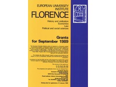 Call for application for 1989/1990: the European University Institute in Florence offers three-year scholarships for European students to pursue a Ph.D. in history, economics, law, and political and social sciences. A one-year program for Diplomas in Comparative Legal and Economic Studies is available (1989 program). Application deadline: 31-01-1990.