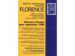 Call for application for 1990/1991: the European University Institute in Florence offers three-year scholarships for European students to pursue a Ph.D. in history, economics, law, and political and social sciences. A one-year program for Diplomas in Comparative Legal and Economic Studies is available (1990 program). Application deadline: 31-01-1990.