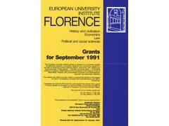 Call for application for 1989/1990: the European University Institute in Florence offers three-year scholarships for European students to pursue a Ph.D. in history, economics, law, and political and social sciences. A one-year program for Diplomas in Comparative Legal and Economic Studies is available (1989 program). Application deadline: 31-01-1991.