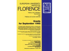 Call for application for 1992/1993: the European University Institute in Florence offers three-year scholarships for European students to pursue a Ph.D. in history, economics, law, and political and social sciences. A one-year program for Diplomas in Comparative Legal and Economic Studies is available (1992 program). Application deadline: 31-01-1992.