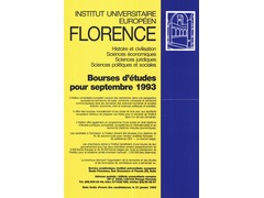 Call for application for 1992/1993: the European University Institute in Florence offers three-year scholarships for European students to pursue a Ph.D. in history, economics, law, and political and social sciences. A one-year program for Diplomas in Comparative Legal and Economic Studies is available (1993 program). Application deadline: 31-01-1993.