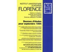 Call for application for 1993/1994: the European University Institute in Florence offers three-year scholarships for European students to pursue a Ph.D. in history, economics, law, and political and social sciences. A one-year program for Diplomas in Comparative Legal and Economic Studies is available (1994 program). Application deadline: 31-01-1994.
