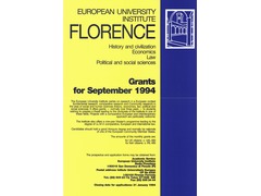 Call for application for 1993/1994: the European University Institute in Florence offers three-year scholarships for European students to pursue a Ph.D. in history, economics, law, and political and social sciences. A one-year program for Diplomas in Comparative Legal and Economic Studies is available (1994 program). Application deadline: 31-01-1994.