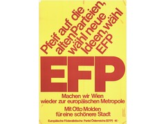 Slogans: "Forget the old parties, choose new ideas, choose EFP! Let’s make Vienna a European metropolis again. With Otto Molden for a more beautiful city”.