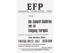 Conference: "The future of South Tyrol and the unification of Europe"; speech by Otto Molden (general delegate of the Federalist International).