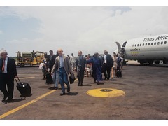 Pascal Lamy during a visit to Benin with European Commissioners Poul Nielson and Franco Nulli
