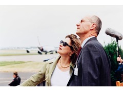 Pascal Lamy during a visit to a French military airbase with Minister of Defence, Alain Richard