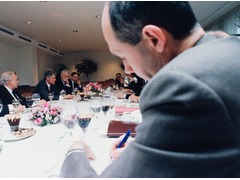 Pascal Lamy during a breakfast meeting with US President, Bill Clinton