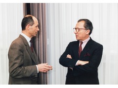 Pascal Lamy having an exchange with European Commission President, Jacques Delors