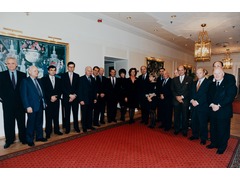 Pascal Lamy during a cabinet's meeting chaired by French President, Jacques Chirac