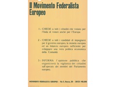 Message: "The European Federalist Movement urges Italian voters to vote for Europe, calls on candidates to commit to a European government, currency, and budget, and informs the public it will monitor European Parliament members' actions".