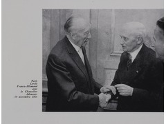 Konrad Adenauer, Chancellor of Germany, shakes hands with Léon Daum