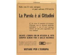 Poster designed like a newspaper, advocating for voting in favor of Europe to save Italy.
