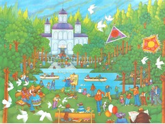 Poster used by PSOE in the 1979 Spanish elections campaign. Illustration of a park, inspired by the Retiro Park in Madrid, with many people enjoying the outdoors with an idyllic landscape, a colorful paradise, illustrating the future they wanted to advertise for their election campaign, the change they wanted in the environment of cities and towns. There are two kites with the rose and the sun characteristic of this political party, as well as a man reading the newspaper El Socialista and a copy of Karl Marx's Capital on a bench.
