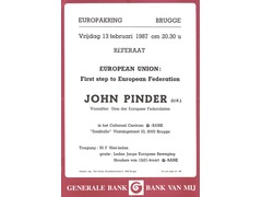 Poster announcing a colloquium by the chairman of the Union of European Federalist on the topic "European Union: First Step to European Federation".