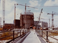 Overview of the construction of the north footbridge of the Caorso nuclear power plant.