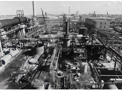 View from October 23, 1979, showing the ongoing construction of the project for a pyrite ash treatment plant for the production of iron pellets and copper metallurgy at Quimigal Barreiro, Portugal.