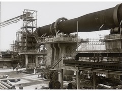 View from December 19, 1979, showing the ongoing construction of the project for a pyrite ash treatment plant for the production of iron pellets and copper metallurgy at Quimigal Barreiro, Portugal.