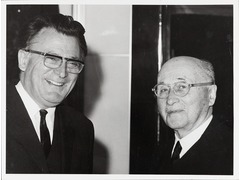 Albert Coppé, Member of the CEC in charge of Budgets, Levies, Credit and Investment and the Information Service, next to Jean Monnet, founder of the Action Committee for the United States of Europe.