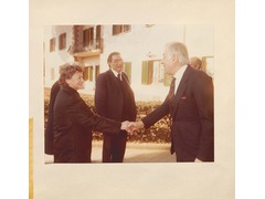 A man and a women shaking hands in front of the European University Institute president Werner Maihofer.