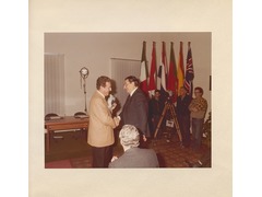 European University Institute president Werner Maihofer shaking hands with Carlo Ripa di Meana.