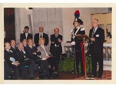 President of the European University Institute, Patrick Masterson, during his speech in the ceremony of the 25th anniversary of the European University Institute. From the left: Secretary General, Gianfranco Varvesi, Prime Minister of Italy Giuliano Amato and the future President of the European University Institute Yves Mény.