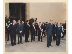President of the European University Institute Yves Mény, Secretary General, Gianfranco Varvesi, Mayor of Firenze, Leonardo Domenici and others waiting for President of the Italian Republic Carlo Azeglio Ciampi and President of the Republic of Austria Thomas Klestil.