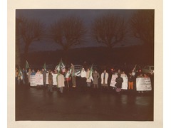 Demonstration of Union of European Federalists welcoming the minister of foreign affairs, Giulio Andreotti in the European University Institute.