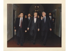 The President of the Republic of Portugal, Mario Soares, his diplomatic advisor, João Diogo Nunes Barata, and theSecretary General of the European University Institute, Marcello Buzzonetti, in Badia Fiesolana.