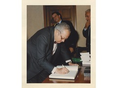 The President of the Republic of Portugal, Mario Soares, signs the visitors' book at the European University Institute.