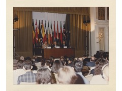 The President of the European University Institute, Patrick Masterson, the President of the Republic of Portugal, Mario Soares and his diplomatic advisor, João Diogo Nunes Barata, during the speech.