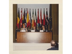 The President of the European University Institute, Patrick Masterson, the President of the Republic of Portugal, Mario Soares and his diplomatic advisor, João Diogo Nunes Barata, during the speech.