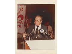Portrait of the President of the Republic of Portugal, Mario Soares during his conference.