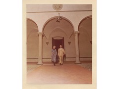 The President of the European University Institute, Max Kohnstamm, and another guest in the cloister of Badia Fiesolana.