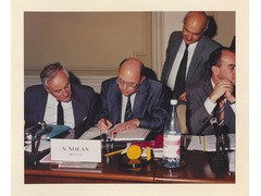 Portrait of the Representative of the Government to the High Council of the European University Institute and delegate of The President of Ireland, Seán Nolan, signing the Convention revising the convention on the establishment of a European University Institute.