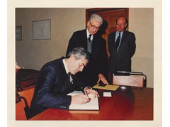 The Prime Minister of the Netherlands, Ruud Lubbers, signing the visitor's book next to the President of the European University Institute, Emile Noël.