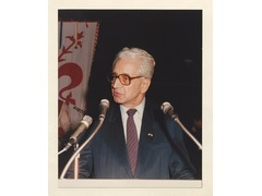 Portrait of the President of the European University Institute, Emile Noël, during his speech in the XII Jean Monnet Conference.