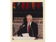 Portrait of the President of the European University Institute, Patrick Masterson during his speech in the XIX Jean Monnet Conference.