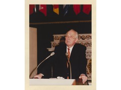 Portrait of the Professor Hans Tietmeyer during his speech in the XIX Jean Monnet Conference.